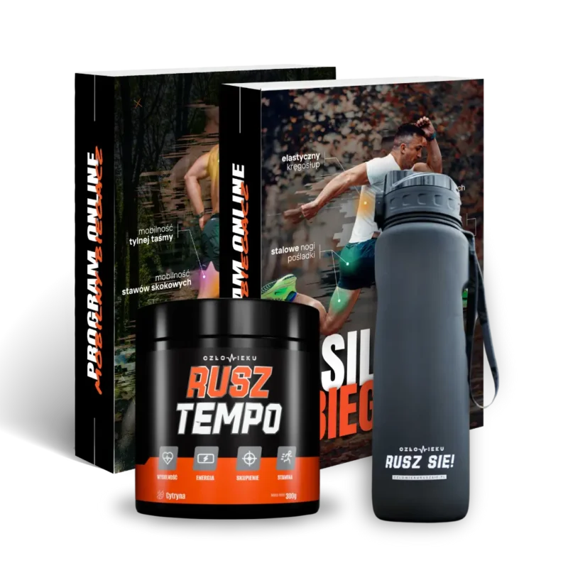 Pakiet VIP: Mobilny Biegacz + Silny Biegacz + butelka na wodę + suplement Rusz TEMPO