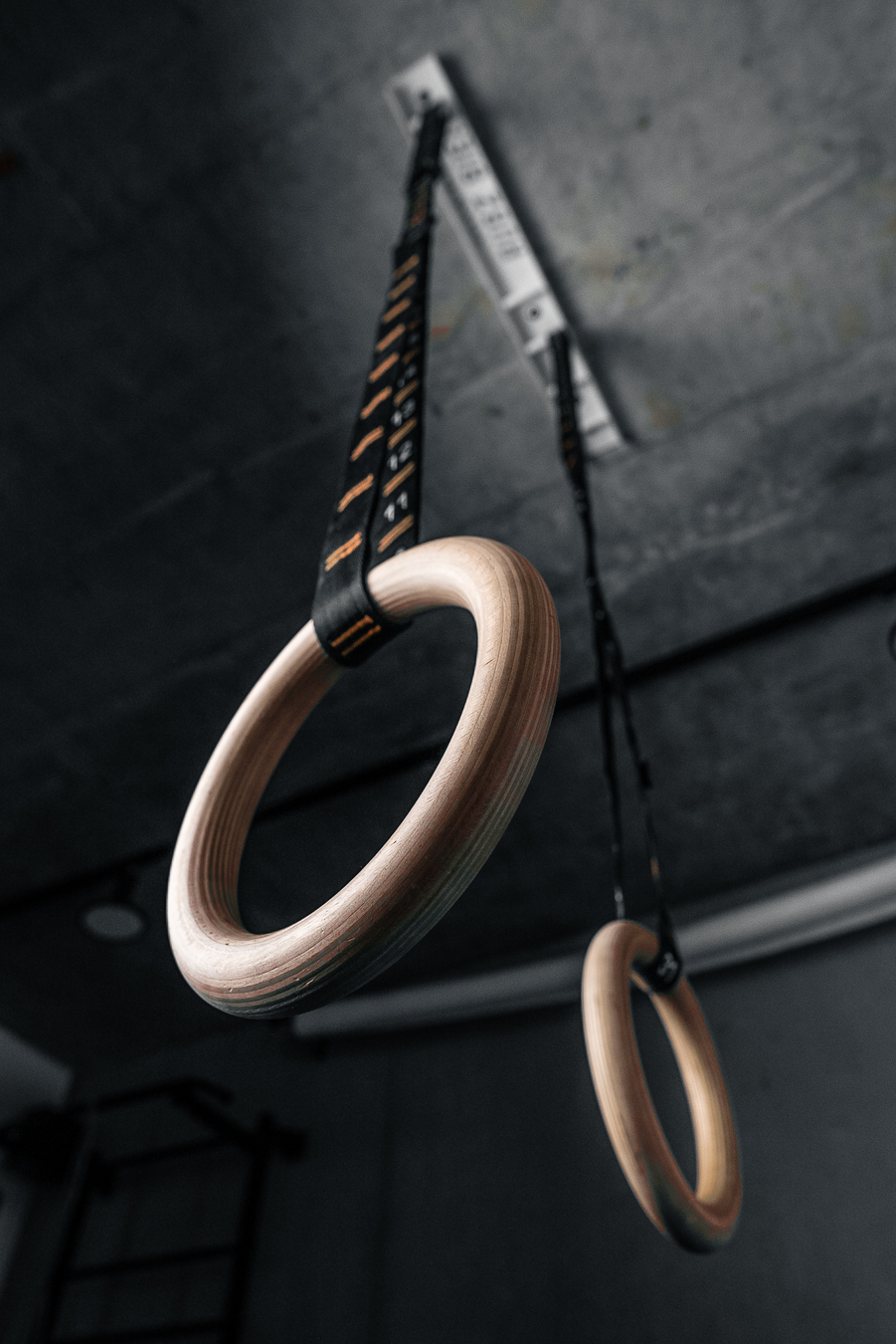 Najwyższej jakości koła gimnastyczne z nowatorskim systemem poziomowania. Dzięki karabińczykom, koło jest zawsze w tym samym poziomie i się nie luzuje. Skalowane taśmy sprawiają, że koła zamontujemy dosłownie w 2 minuty.